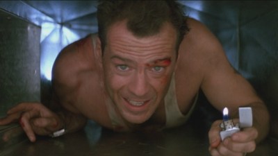 In the Die Hard series, John “Yipee-ki-yay motherfucker” McClane defeats evil villains (notably always German or African American) through a series of extremely courageous and wildly stupid action scenes. His reckless behavior and slight mental imbalance is typical of the white buddy cop as are his lone antics. His black buddy cop sits in the car eating twinkies in Die Hard 1, talks to him on the phone in Die Hard 2 or does get involved but only to an extent because as Samuel L Jackson says in Die Hard 3: “Thats a white man with white problems, you deal with it!”. In these films it is the white buddy cop that takes charge while the black buddy cop takes his place as his sidekick.