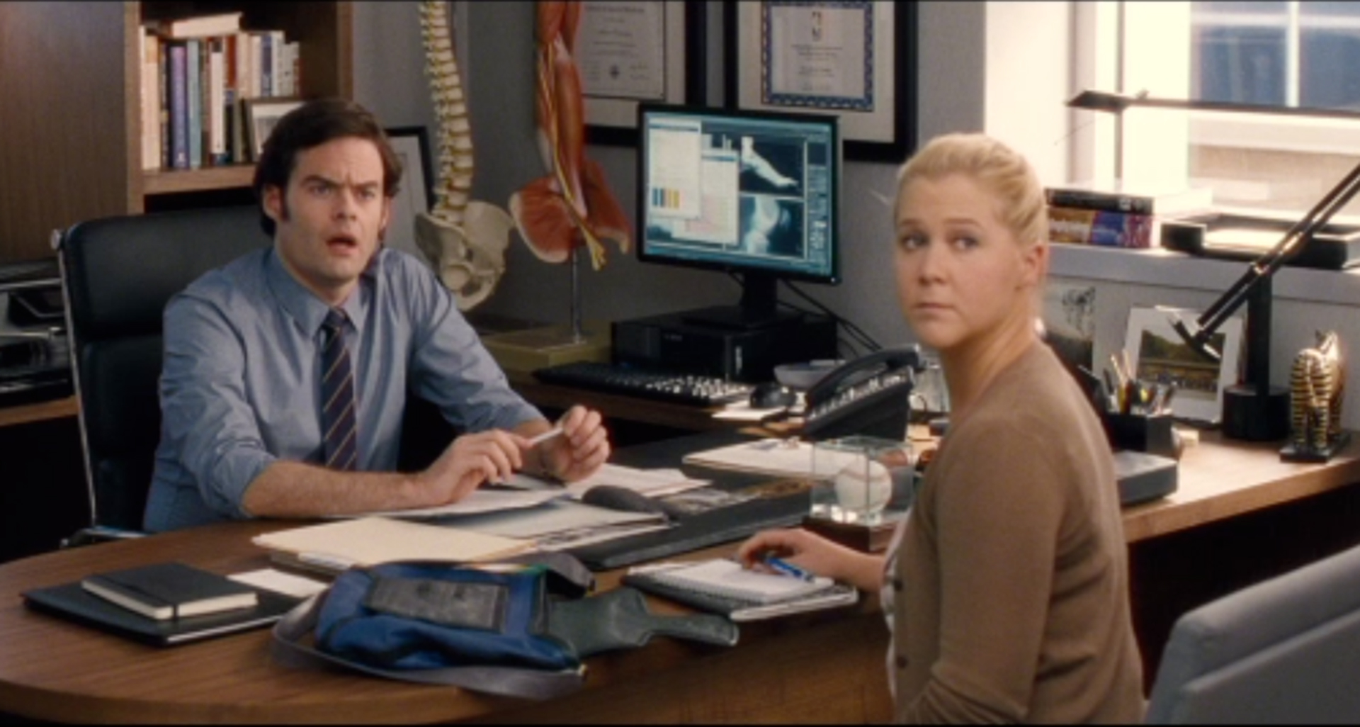 Amy juggles problems with managing the cost of her dad’s assisted living all while dealing with the very thing she’s always avoided: monogamy. As a writer, she’s assigned to cover a profile of Aaron Conners (Bill Hader), a rising and notable name in sports medicine, leaving her to deal with an influx of feelings storming towards her. After spending one night with Amy, Aaron is convinced that he and Amy have a connection and his conviction ends with the fruition of the couple.